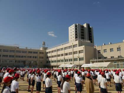 本日の1時間目に全校児童で運動会の全体練習を行いました。