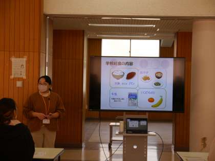 給食の調理の様子を見ていただいたり、栄養教諭より講話を聞いていただいたりして、学校給食に関する理解を深めていただくことができたと思います。