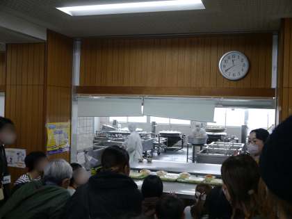また、童心に帰っていただき、子どもたちと同様に給食の配膳から片付けまで取り組んでいただきました。
