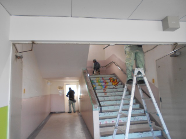 冬休みの子どもたちがいない期間を活用して、南校舎の階段の壁面塗装の作業を行っていただいています。