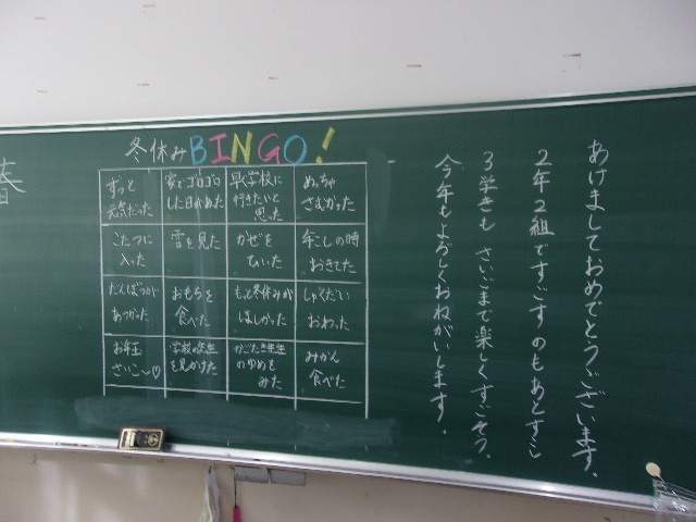 2・3時間目は、各学級でおみくじやビンゴを楽しんだり、冬休みの絵日記を発表したりしながら、子どもたちは久しぶりの友達との時間を笑顔で過ごしました。どの教室も、あたたかな雰囲気で学期のスタートを迎えることができました。