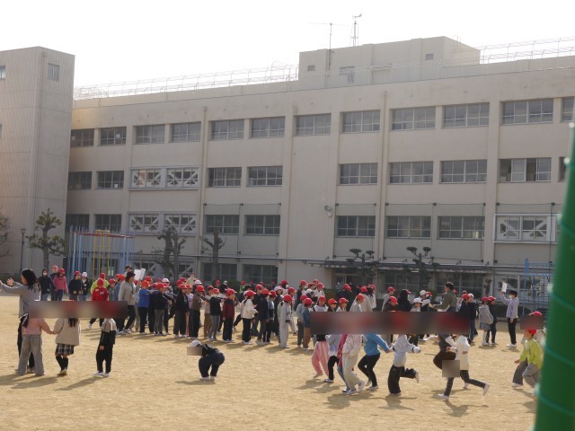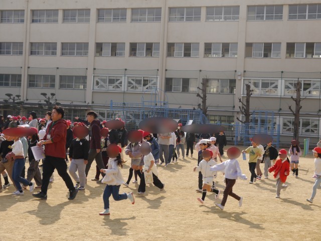 訓練が始まると、子どもたちは素早く運動場へ集まり、しっかりと先生の指示を聞くことができていました。