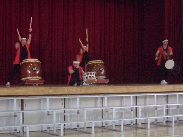 浅香太鼓集団「獅子」の方々が2年生のために和太鼓の演奏会を開いてくださいました。「ドンっ!」と一発打たれた音に子どもたちも一気にわくわく感があふれ、演奏に見入ってました。