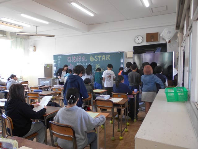 1時間目の始業式では、新しく来られた教職員の方との対面をした後、様々な歓声の飛び交う担任の先生の発表でした。