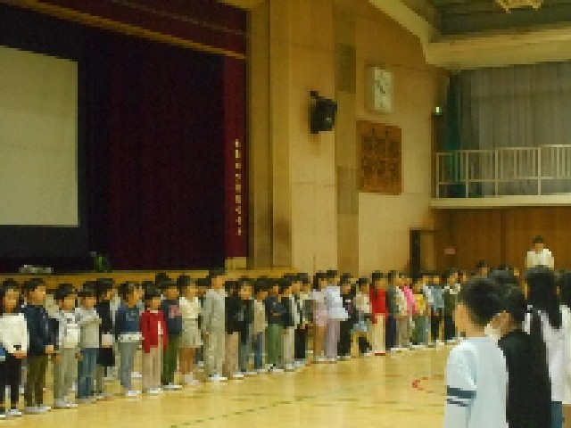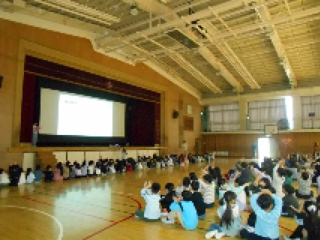 児童会主催の「新入生を迎える会」でお兄さん・お姉さんたちにお祝いの言葉をもらったり、依羅小学校クイズをしてもらいました。