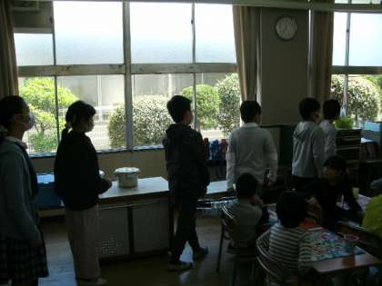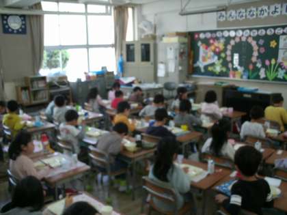 いよいよ今日から給食が始まりました。1年生にとっては初めての給食!6年生にお手伝いをしもらいました。おいしく食べることができました。