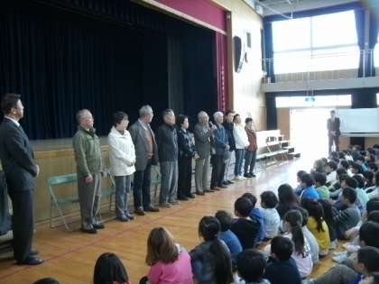 今年度も下校の見守りでお世話になる地域の方々に、全校児童が「よろしくお願いします!」と大きな声であいさつをしました。暑い日も寒い日も、風の日も雨の日も、子どもたちを見守っていただき、本当にありがたいです。今年度もよろしくお願いいたします。
