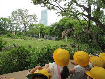 9日(木) 天王寺動物園に行きました。過ごしやすい気候でした。いろいろな動物を見て、子どもたちは喜んでいました。通路を自由に歩いているホロホロチョウに驚きました。お昼は、みんなでお弁当を美味しく食べました。