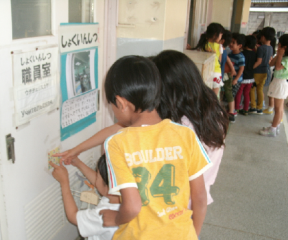 16日 1年生がグループで学校たんけんをしました。校内の様々な教室を巡り、「何をする部屋なのか」を学びました。職員室や校長室へ入る時は、きちんとあいさつをすることができました。
