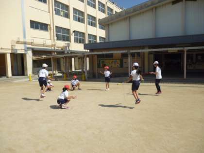 23日から本格的にクラブ活動が始まりました。快晴のもと、思う存分活動を楽しみました。なわとびクラブ(上)ラケット野球クラブ(下)
