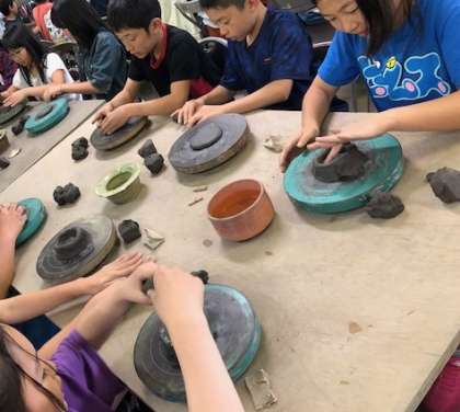 手びねりで器や湯飲みなどの形にしていきます。自分のイメージを大切にしながら集中して取り組んだようです。