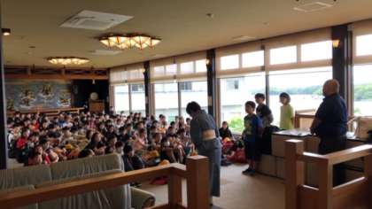 一晩お世話になった『みち潮』の皆さんとお別れです。きちんとあいさつをして出発しました。スペイン村には9:20ごろに到着予定です。