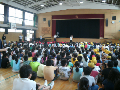 3不審者が確保されたら、近くにいる教職員と講堂へ集まる。