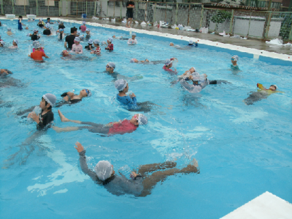 26日 セントラルウェルネススポーツから講師の方々をお招き、着衣水泳の学習をしました。「服を着たままでは水中で動きにくい」「普段使っているペットボトルが浮き輪代わりになる」などを体験を通して知ることができました。今回の学習を生かして、安全かつ楽しい生活を送ってほしいです。