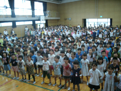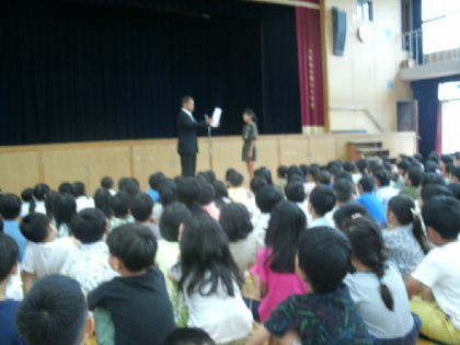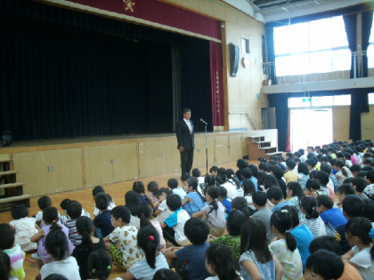 19日 1学期終業式を行いました。1学期の学習や生活の振り返り、安全に楽しく過ごすために必要なことについてお話を聞きました。やってみたいことや楽しみなことに胸をワクワクさせている子どもたちですので、ご家庭でも夏休み期間中の見守りをよろしくお願いします。