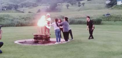 天候が心配でしたが、無事に実施できました。自然の一つである「火」について考えたり、炎を囲んでスタンツをしたりしました。みんなで盛り上がりました。
