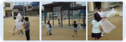 とじこめた空気や水の性質についての学習が始まりました。実験を通して性質を見つけていきます。その第一弾として、ゴミ袋に空気をとじこめたり、押し合いっこをしたりしながら、空気の存在を感じていました。