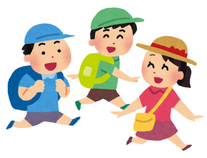 本日の遠足は実施します。 雨具(カッパ)を忘れないでください。
