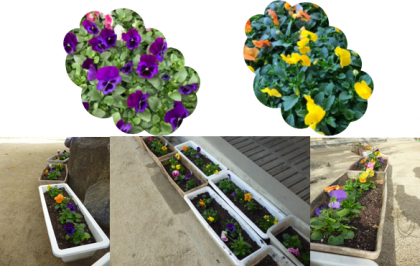 8日 地域の女性部の方々にお越しいただき、パンジーの植栽を行いました。苗を植える位置の決め方、土の掘り方や被せ方を教わりながら、たてわり班で協力して取り組みました。子どもたちは自分の役割をきちんと果たしました。