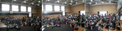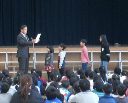 夏休みの課題で取り組んだ作品の表彰を行いました。今年度はたくさんの賞をいただきました。これを励みに、今後もすばらしい作品を作ってほしいです。