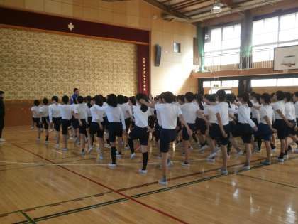 17日 墨江丘中学校に、2回目の集団行動に行きました。活動の前に、成長するために一番大切なのは「本気で取り組むこと」だと教わりました。その言葉を受け、子どもたちは全力で活動しました。前回よりもレベルの高い内容に取り組む中で、みんなで息を合わせてすばやく行動することの大切さを理解しました。今回の活動を通して、中学校生活が近づいていることを実感していました。