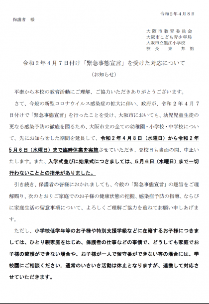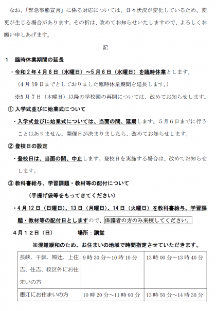 「緊急事態宣言」を受けての対応