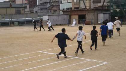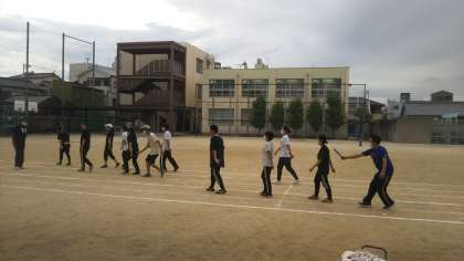 教員研修でリレーのバトンパスの練習を行いました。学習参観(体育)で4,5,6年生はリレーを行う予定です。