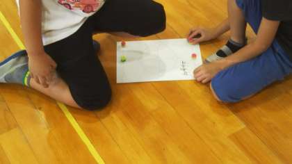 2年生は、出前授業で隣の国の遊びを教えていただき、体験しました。