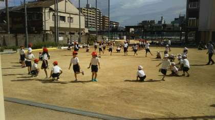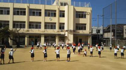 1年生は、体育の時間にダンスの練習をしました。輪になって、踊る場面もあります。