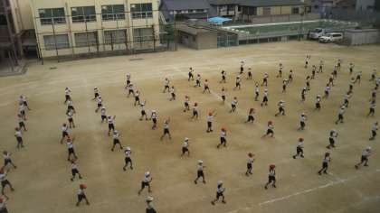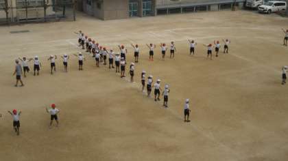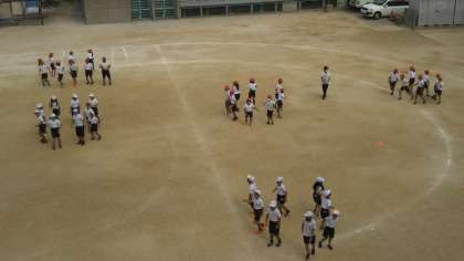 3年生のダンスは隊形移動がいっぱいあります。最初の位置と最後の位置が同じです。ダンスの最後にはもとに位置に戻れるかな。