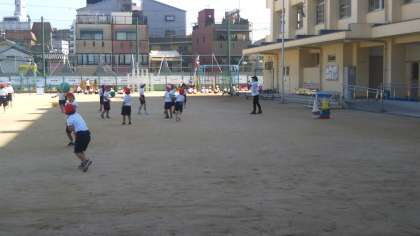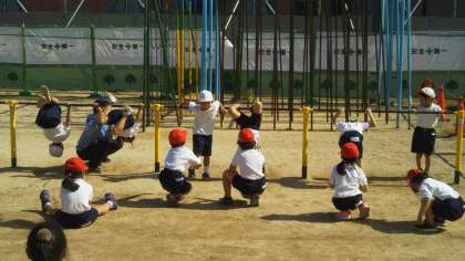 学習参観(体育)も終わり、1年生は「ボールなげゲーム」と「てつぼうをつかったあそび」の学習を始めました。