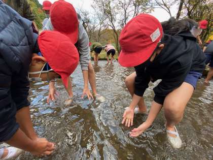 14時30分から、魚つかみを始めました。この後、焼いてもらって食べます。
