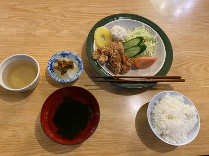 今日はたくさんの活動があり、疲れましたが、みんな元気です。楽しく夕食をいただきます。