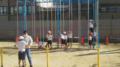 11月4日(水) 1年生は、体育の学習で、新しくなった「のぼり棒」を使って、学習をしました。