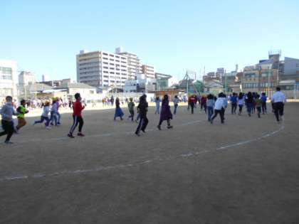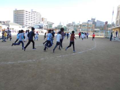 今日から、業間かけ足を始めました。1、3、5年生は月曜日と水曜日の20分休憩に体力づくりとして、かけ足に取り組んでいます。