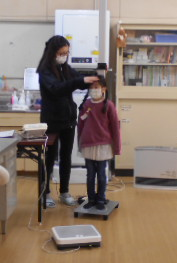 1月8日から経年調査の日を除いて順に実施してきました発育測定です。今日21日は最終の1年生。学級の半数ずつが保健室へきて測定してもらっています。