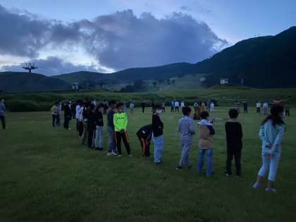 夕食をおなかいっぱい食べました。これから楽しみにしていたキャンプファイヤーです。