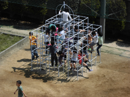 今まで、工事で遊ぶことができなかったジャングルジムへも一目散に駆け出していきました。