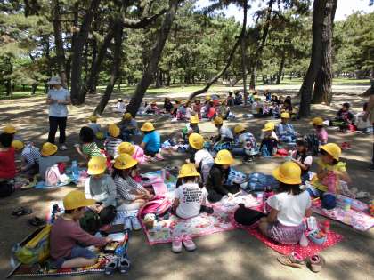 4月30日 1年生が浜寺公園へ遠足に行きました。小学校生活最初の遠足は全員参加で楽しみました。