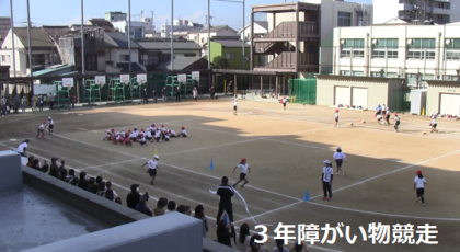 11月18日 3年の学習参観「体育」2回目です。今回は、個人走(障がい物競走)、団体競技(台風の目)団体演技(ダンス)をしました。