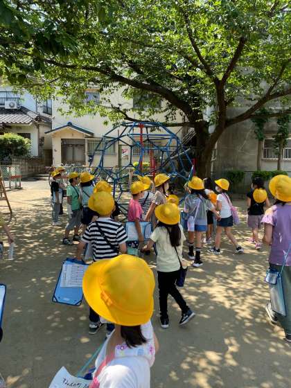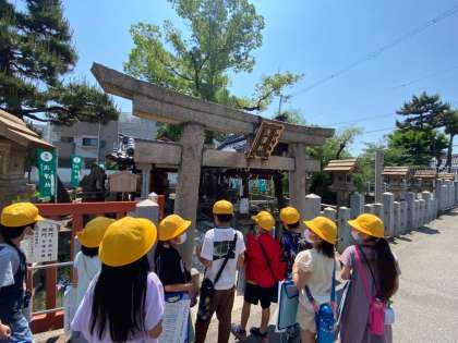 2年生は、校区たんけんにでかけました。学校の北側をまわりました。