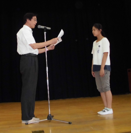 6年2組の森原弥久さんの標語が「優秀」賞をいただき、6月20日、「第65回社会を明るくする運動 住吉区大会」で表彰されました。