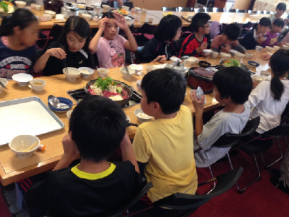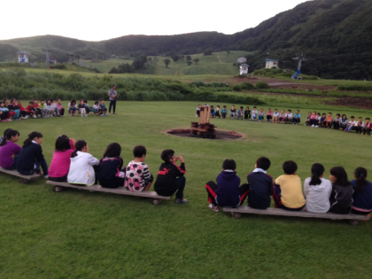 魚つかみで冷えたからだをお風呂で温めました。夕食の後は、キャンプファイヤーです。