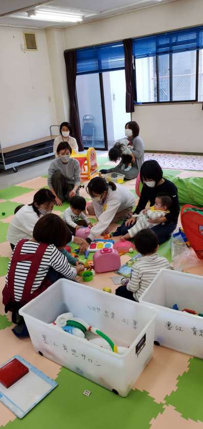 11月11日(金)の育児サロンには10組11人の参加があり、読み聞かせ、手遊びなどで遊びました。