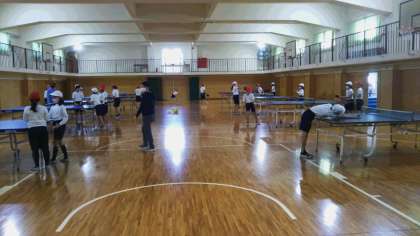 講堂建築のため、3年間、屋内スポーツクラブは、月3回、清明学院高校の1階体育館をお借りして、活動してきました。本日が、お借りする最終日となり、卓球をしました。卓球台の準備、片付け等も、いつもやってくださり、たくさんお世話になりました。ありがとうございました。今後も、いろいろなことで、交流をしていただきたく思っています。