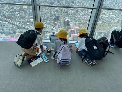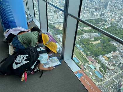 60階の展望台から、大阪市の様子をながめ、ワークシートにまとめました。
