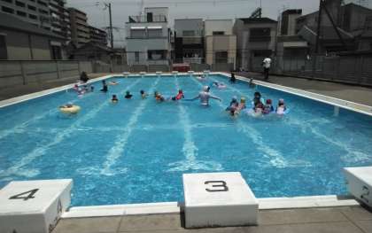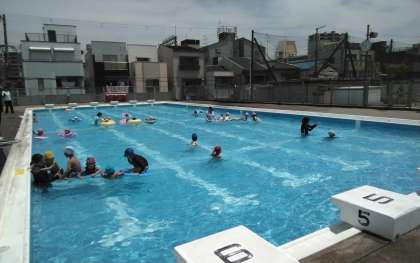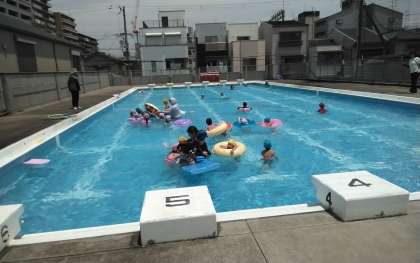 大阪市立墨江幼稚園の子ども達が、本校のプールへ(7月7日)