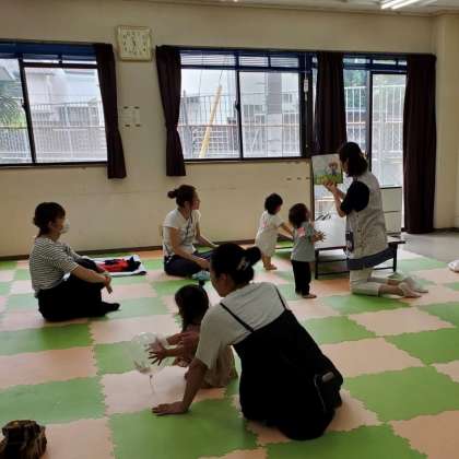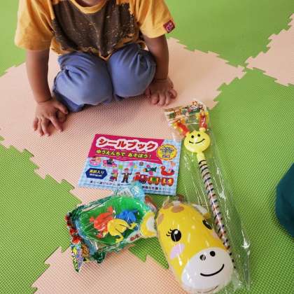 5組の親子が遊びにきてくださいました。ヨーヨーすくい、くじ引き、ボーリングコーナーを用意し、夏祭りを楽しんでいただきました。