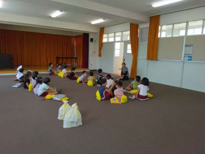 防災の日、9月1日に、墨江幼稚園の皆さんが、地震・津波の避難訓練で、墨江小学校に避難してきました。避難した3階の音楽室では、先生のお話をよく聞いて、保護者の方のお迎えを待っていました。