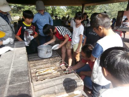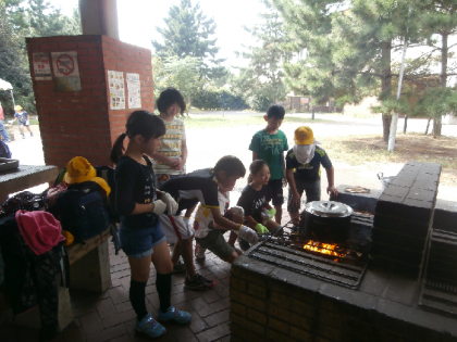 10月9日5年生が羽衣青少年センターに行きました。グループに分かれて、カレーライスを作って食べました。野外炊飯を初めて経験した子どもが多かったですが、とてもおいしくできました。